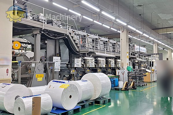 Uma impressora de rotogravura de 6 cores de alto desempenho com uma velocidade máxima de 300 m/min, adequada para várias aplicações de impressão. As caraterísticas incluem controlo automático de viscosidade, sistema de inspeção de impressão e torre de emenda voadora para um manuseamento eficiente das bobinas.