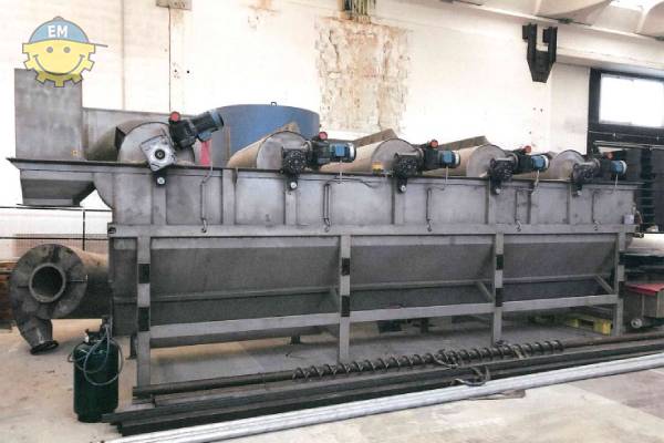 Linha de lavagem CMD para filmes LDPE, HDPE e MDPE, com uma produção até 700 kg/h, inclui moinhos, centrífugas, tanque de flotação e silos; desmontada mas em bom estado. Marca e modelo: CMD Material que pode ser processado: Filme, LDPE, HDPE, MDPE Produção: Até 700 kg/h, dependendo do tipo de material e da velocidade de alimentação. Mais informações: Trabalhou apenas 4/5 meses desde o ano de fabrico Acessórios:- 1 x moinho de 1000