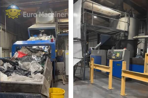 Linha de reciclagem/repelletização EREMA 1514TVE SW8/170 usada para processar PE, LDPE e HDPE, com uma produção de até 1.000 kg/h. A linha inclui um transportador de correia, detetor de metais, extrusor cortador/compactador com ventilação dupla, trocador de tela automático, peletizador de face quente, tela de desidratação e secador centrífugo de pellets. Marca e modelo: EREMA 1514TVE SW8/170 Material que pode ser processado: PE, LDPE, HDPE Diâmetro do parafuso: 140 mm Rendimento: Até 1.000 kg/h, dependendo do tipo de material e da taxa de alimentação. Constituído por:- Transportador de correia FB 7000/1100 novo em 2016