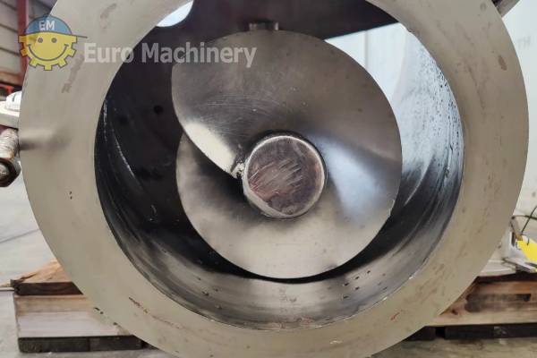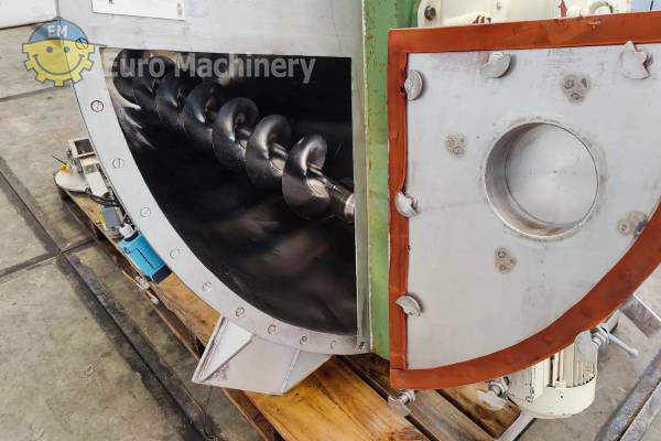 Misturador cónico de aço inoxidável HOSOKAWA NAUTA DBXE-1000 R com capacidade de 1000 L, acionamento superior, descarga inferior e ligação de quebra-lombas; em bom estado de funcionamento. Marca e modelo: HOSOKAWA NAUTA DBXE-1000 R Descreve:- Material: Aço inoxidável