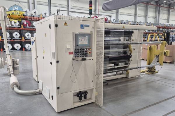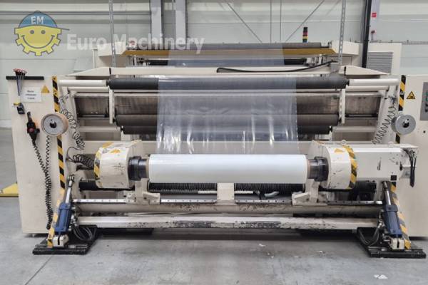 Máquina rebobinadora cortadora Kampf Conslit II para embalagem, película, etiqueta, soluções técnicas capazes de cortar películas rígidas de 10 a 250 µ e películas macias de 20 a 500 µ, largura de corte de 50 mm a 2250 mm Marca e modelo: Kampf Conslit II Material a cortar: Películas de plástico de PE, PP, PA, PET, PVC, papéis e laminados- películas rígidas aprox. 10-250 µ